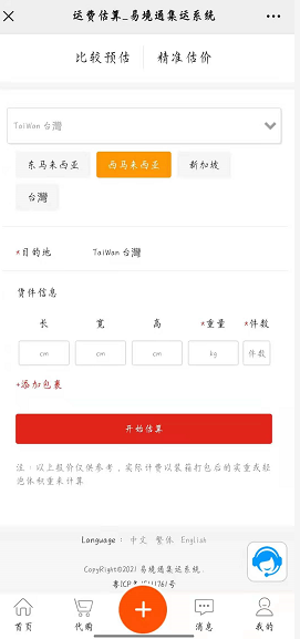 哪很多小伙伴肯定会问到手机端要如何操作呢,其实手机端的话也是一样哦,首先我们可以关注我们集运公司的一个公众号,这时小伙伴进入公众号也是在首页可以看到运费估算的,这时有需要的小伙伴可以点击进去选择精准估价选择需要发往的目的国家输入货件信息即可,如下图所示哦。